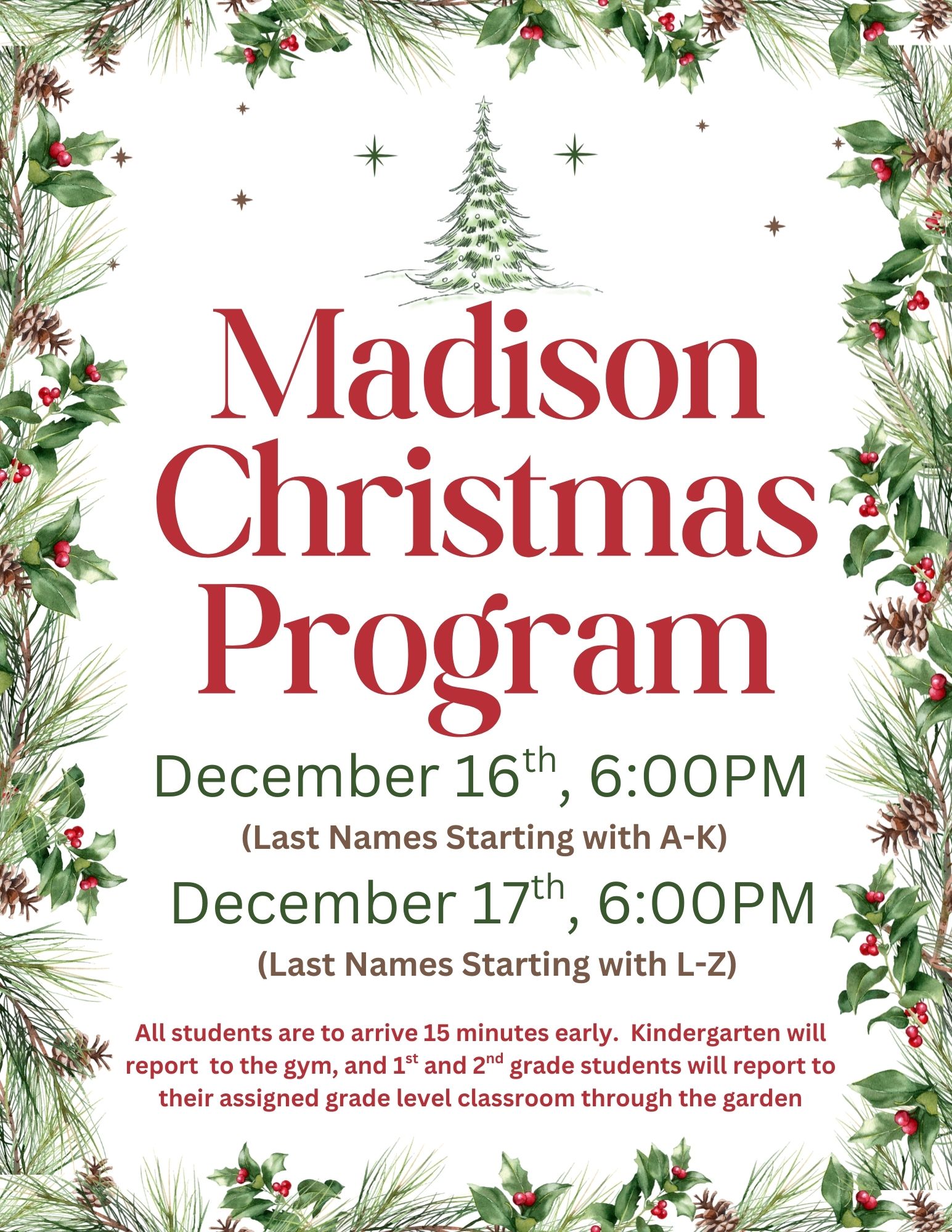 December Madison Newsletter Principal's Message Dear Madison Tiger Families, As we head into Decem...